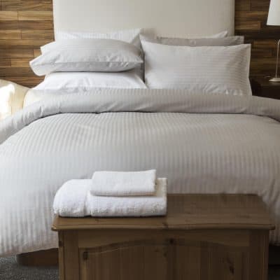 With its smart and sophisticated shadow stripe weave, our Hotel Suite 540 Count Egyptian Cotton range is statement bed linen that would grace any top hotel with its gracefully structured looks and gliding, smooth feel. The fine, long staple fibres of this high quality cotton blend give it tremendous softness and breathability. The dense thread count results in a pleasing weight that feels instantly comforting when you’re beneath the sheets, and that creates an elegant drape across the bed when you’ve freshly made it.